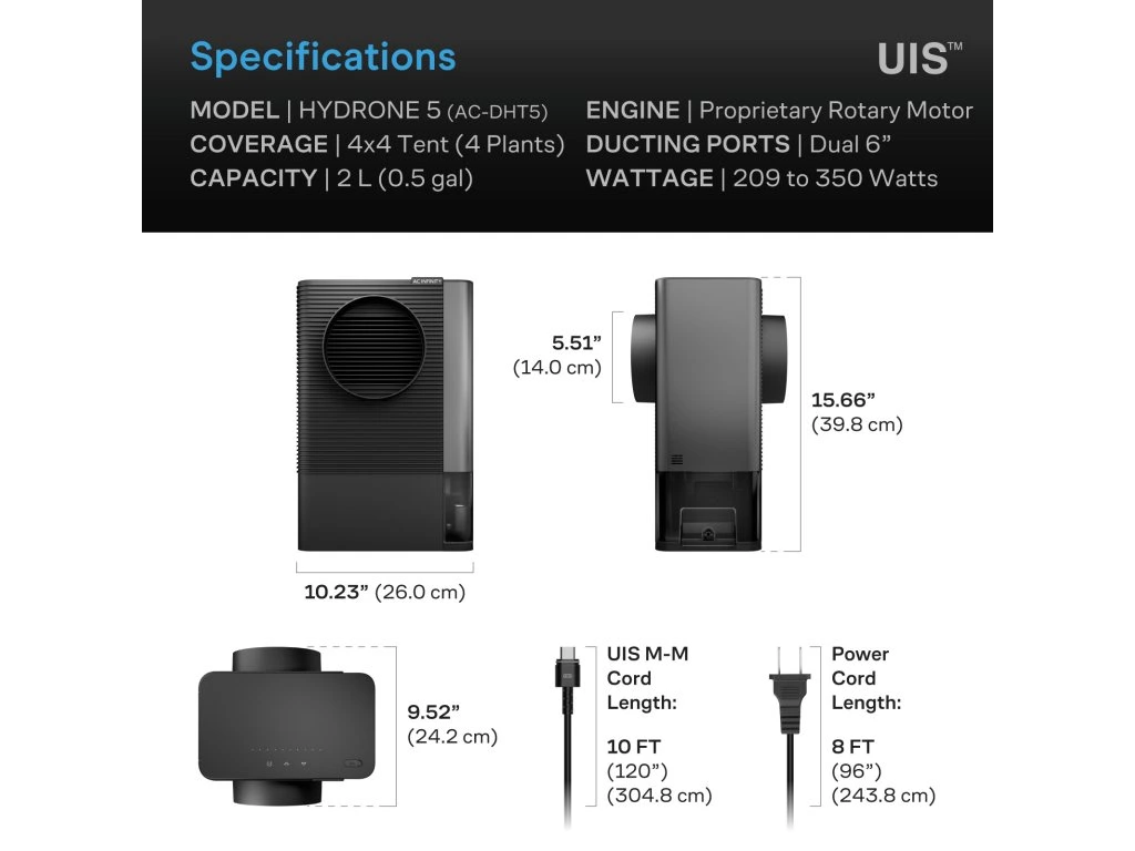 Produktinformationen "HYDRONE 5, Pflanzenentfeuchter mit 10-stufiger Regelung, für bis zu 1.50 x 1.50m große Zelte"