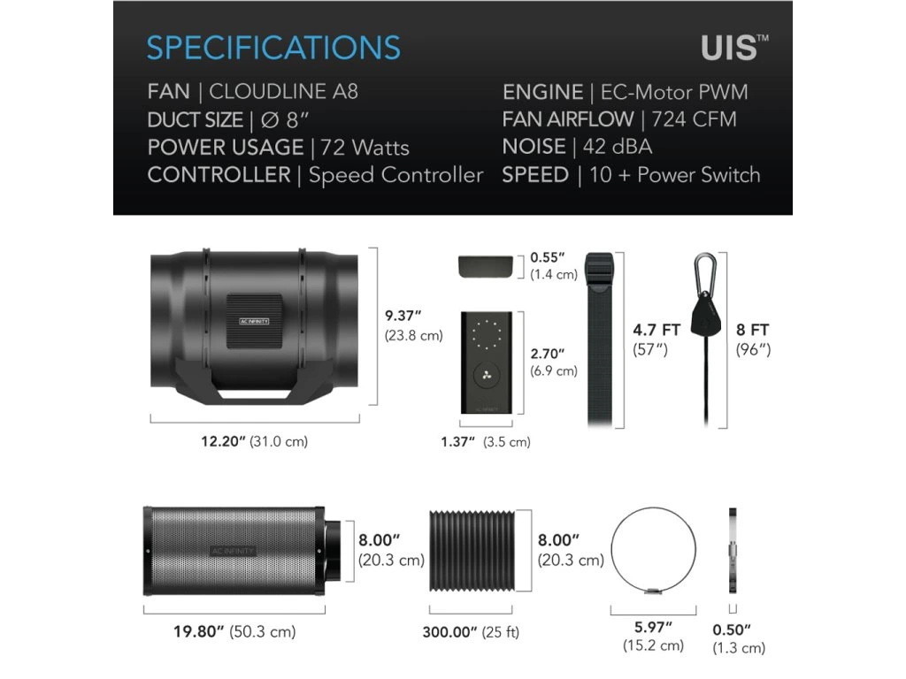Dieses Set enthält alle wichtigen Komponenten für eine zuverlässige Belüftung: einen leistungsstarken Inline-Ventilator, einen hochwertigen Aktivkohlefilter und einen praktischen Geschwindigkeitsregler. Alles ist optimal aufeinander abgestimmt für maximale Effizienz.