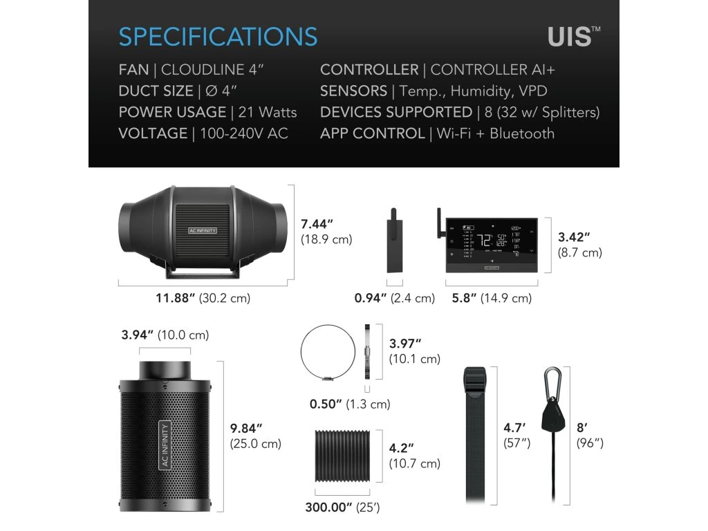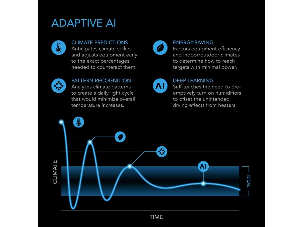 Der integrierte Controller AI+ analysiert Klimadaten und passt die Lüfterleistung automatisch an. Dadurch entstehen optimale Bedingungen für deine Pflanzen – effizient, stabil und vollautomatisch. :contentReference[oaicite:0]{index=0}