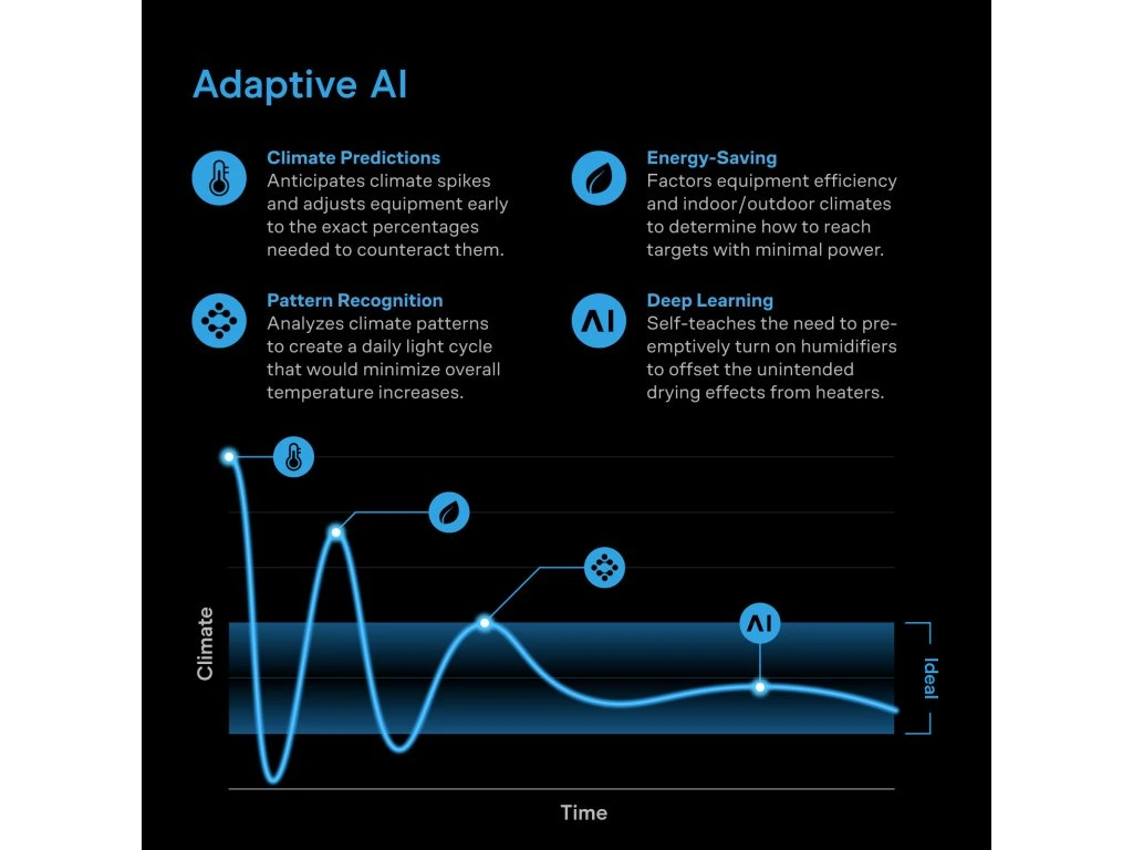 Der integrierte Controller AI+ überwacht kontinuierlich die Klimabedingungen und passt die Lüfterleistung automatisch an. So entsteht eine stabile Umgebung für deine Pflanzen – mit weniger Aufwand und maximaler Effizienz.