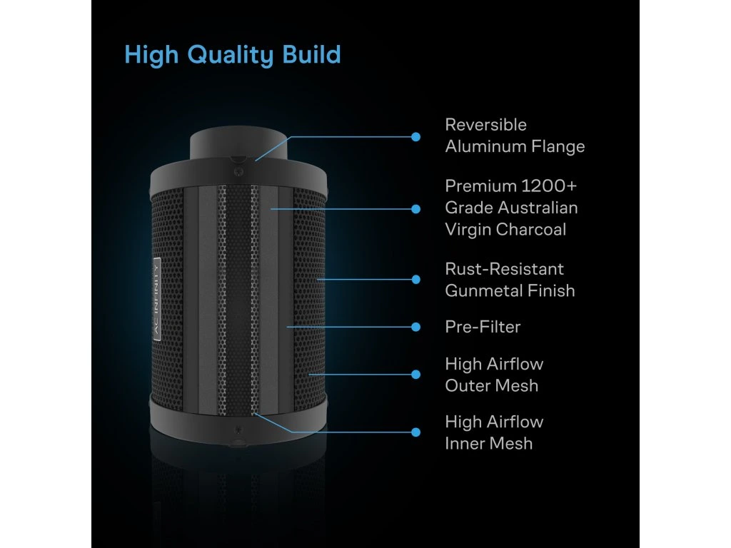 Der Aktivkohlefilter mit hochwertiger Kohle sorgt für eine zuverlässige Entfernung von Gerüchen und Partikeln. Perfekt für diskreten Indoor-Anbau.