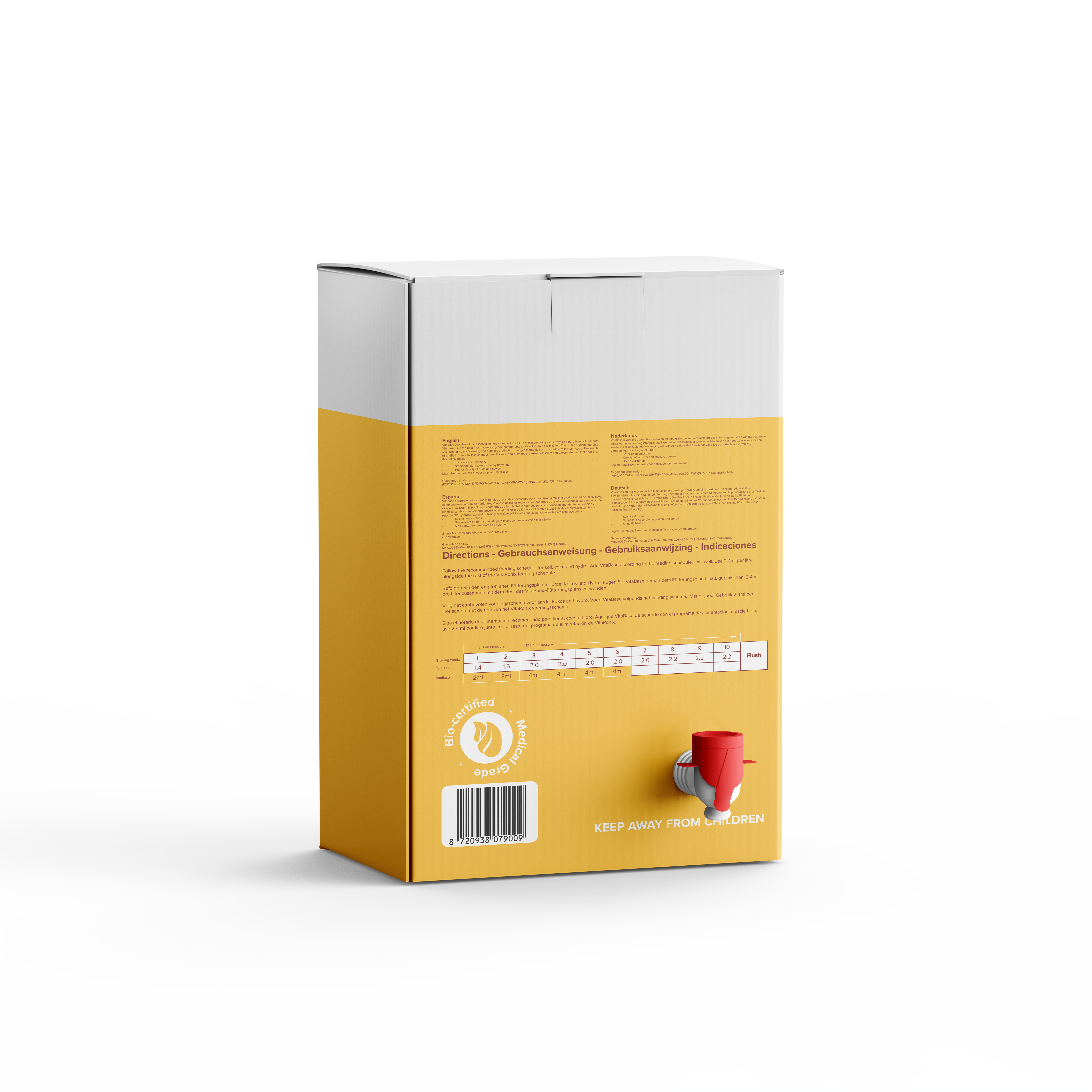 VitaBase ist optimiert, um die maximale Performance deiner Pflanzen zu aktivieren. Der Premium‑Dünger für alle Kultursysteme liefert pharmazeutisch reine Nährstoffe für beeindruckende Ergebnisse – unabhängig davon, ob du mit hartem oder weichem Wasser arbeitest. VitaBase garantiert eine perfekt ausbalancierte Nährstoffversorgung für konstantes, gesundes Wachstum.