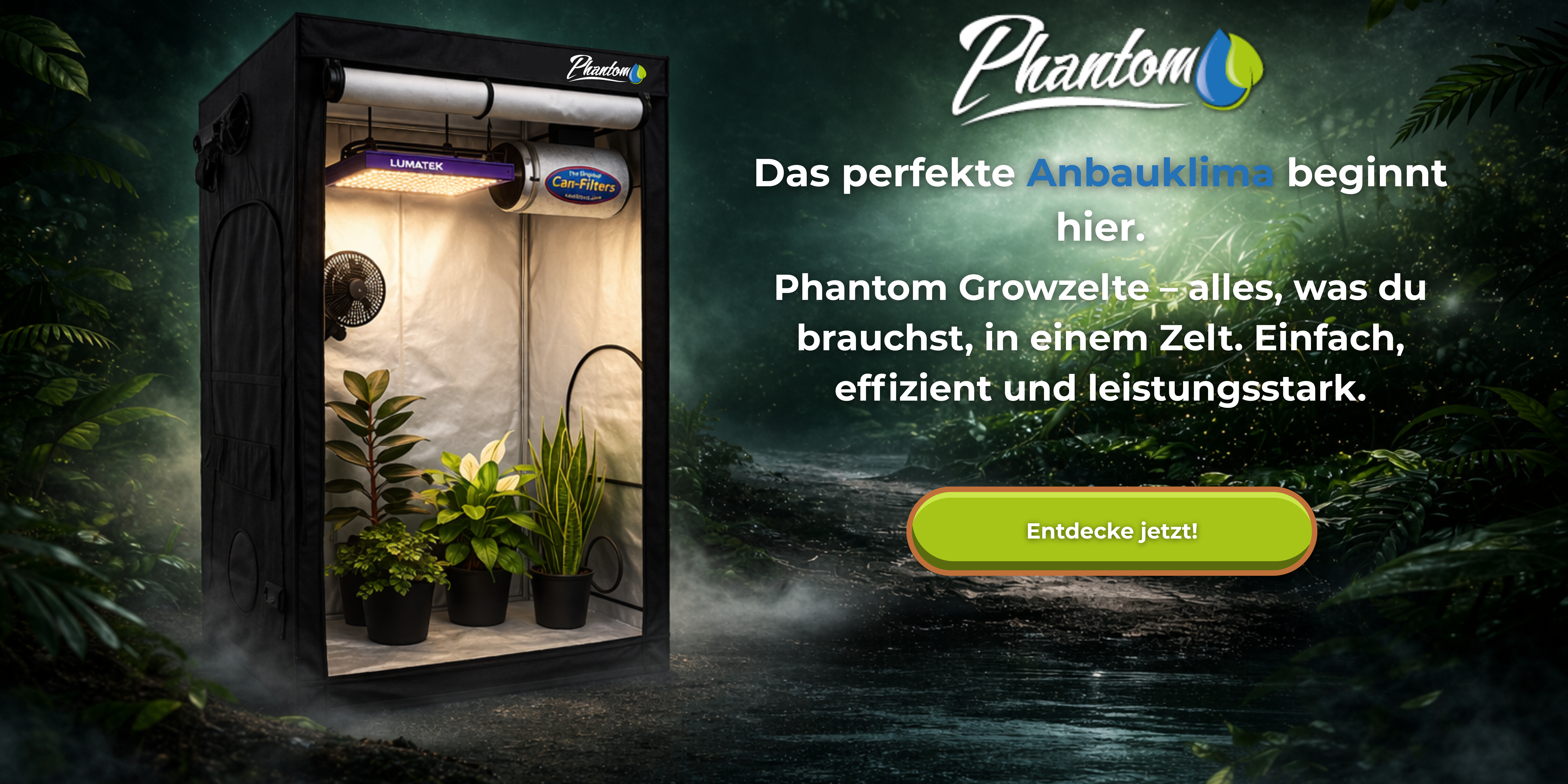 - das Premium-Growzelte Phantom – lichtdicht, stabil, ertragssicher