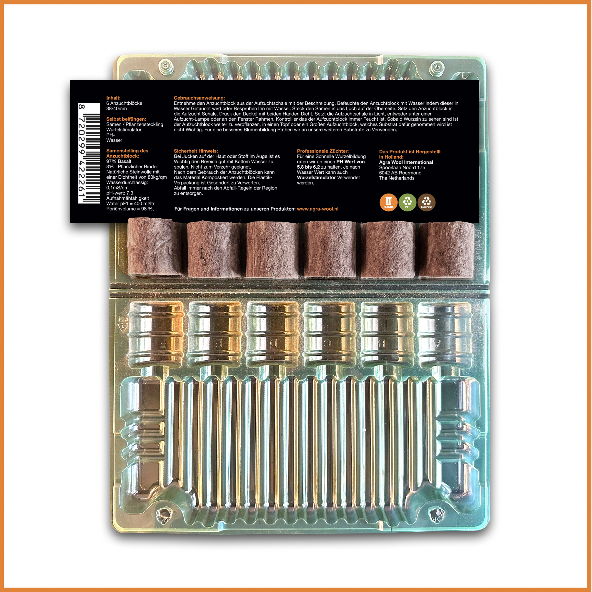 Inhalt; 6 Anzuchtblöcke 38/40mm