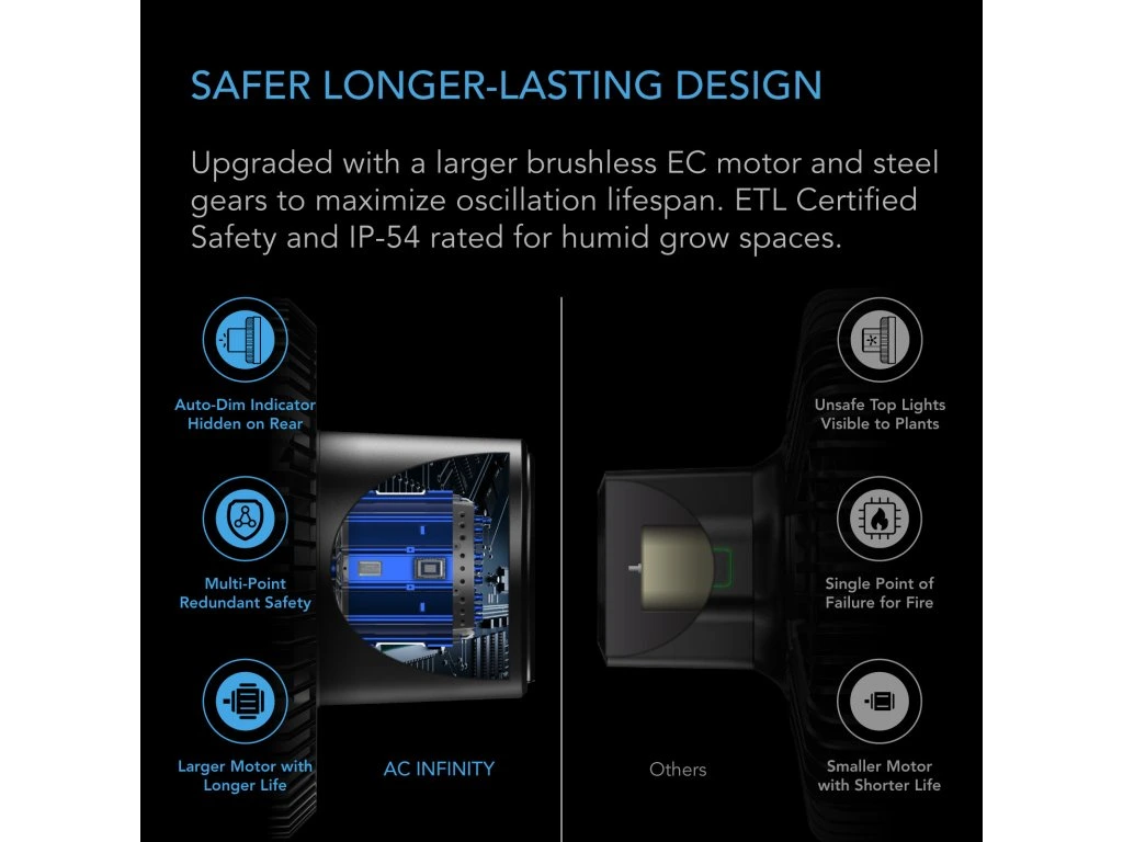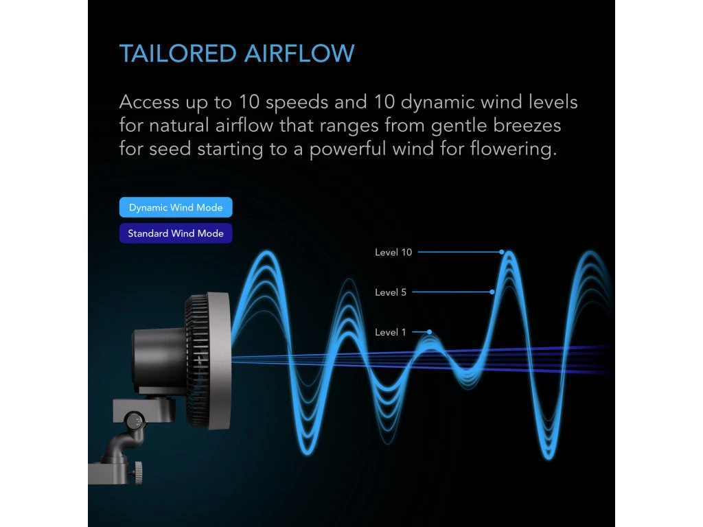 Die manuelle Schwenkfunktion ermöglicht es dir, den Luftstrom genau dorthin zu lenken, wo er benötigt wird. Ideal für größere Growflächen, bei denen eine gezielte Belüftung entscheidend ist.