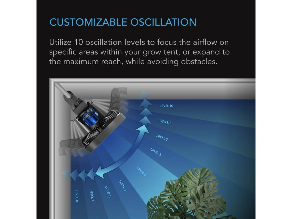 Die automatische Schwenkfunktion verteilt die Luft gleichmäßig im gesamten Growbereich. Dadurch werden Hotspots vermieden und deine Pflanzen profitieren von einer konstanten Luftzirkulation.