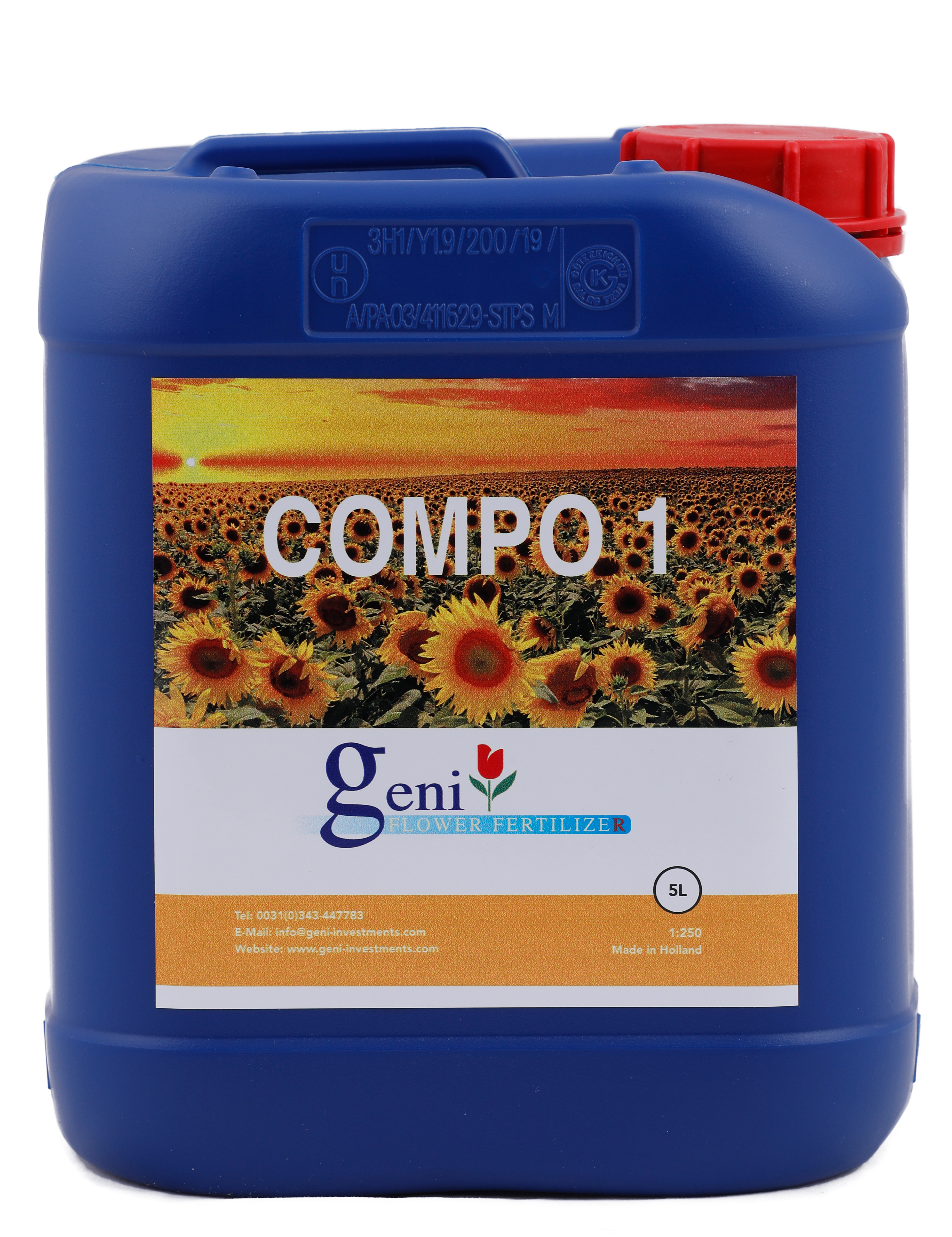 25 ml von Compo mit 10 Liter Wasser vermischen. Rühren Sie alles gut