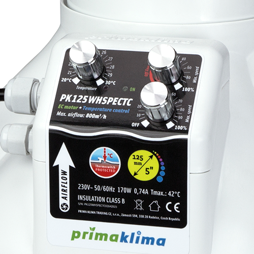 PrimaKlima Whisperblower EC Ø125mm - Temp.-Regler - 800 m³/h