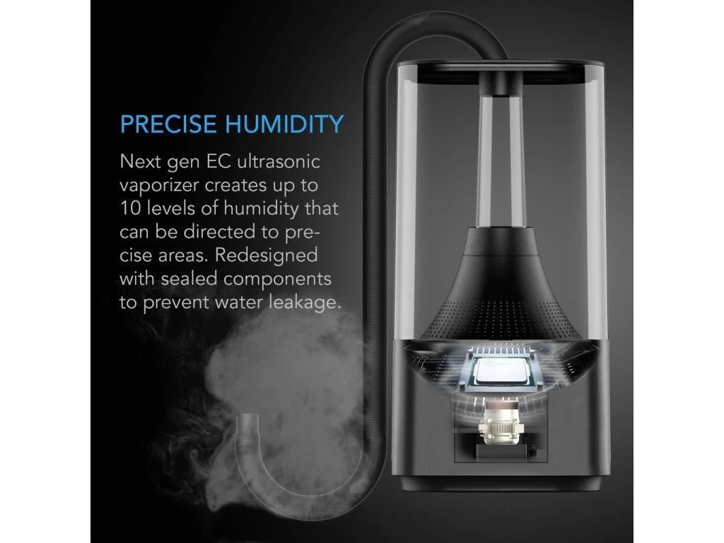 De geavanceerde vernevelingstechnologie zorgt voor een gelijkmatige verspreiding van vocht in de ruimte. Hierdoor voorkom je natte plekken en creëer je een stabiele luchtvochtigheid.