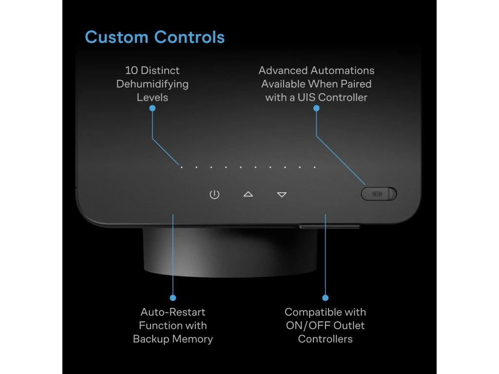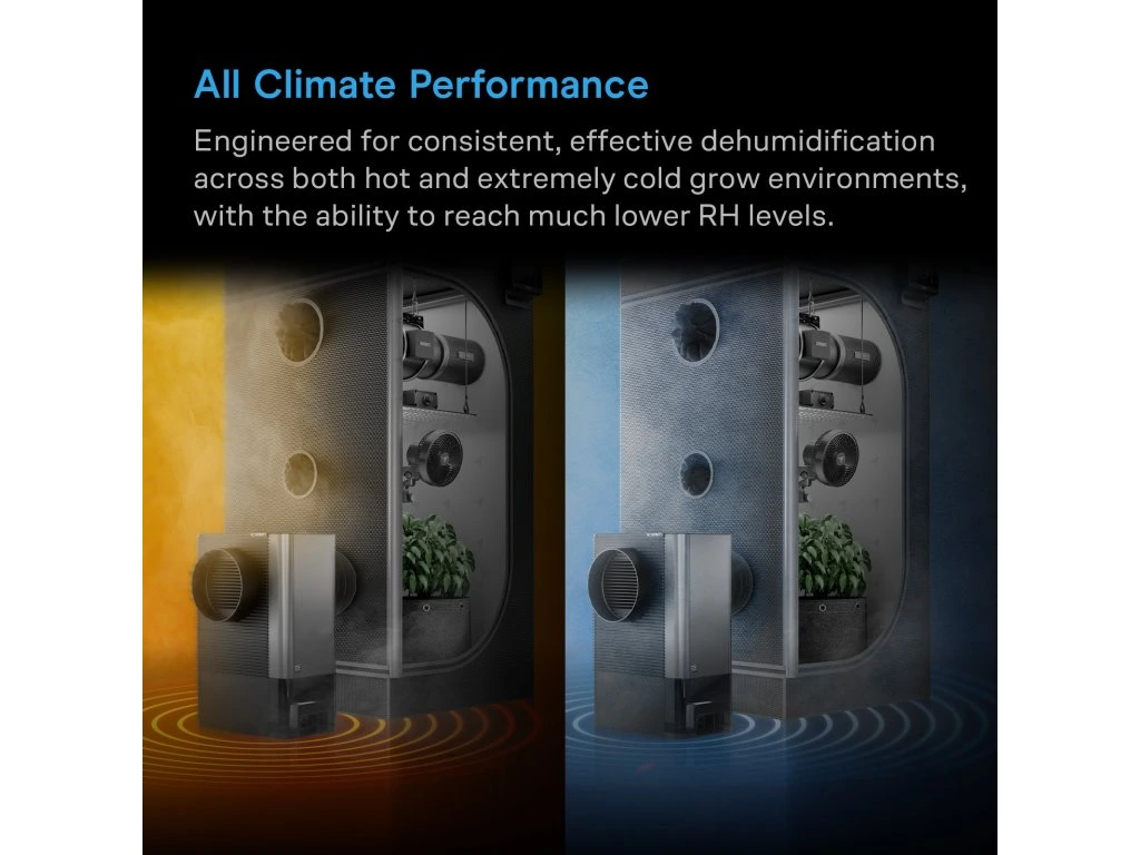 Met de instelbare vermogensregeling bepaal je precies hoeveel ontvochtiging nodig is. Zo creëer je ideale omstandigheden voor elke groeifase van je planten.
