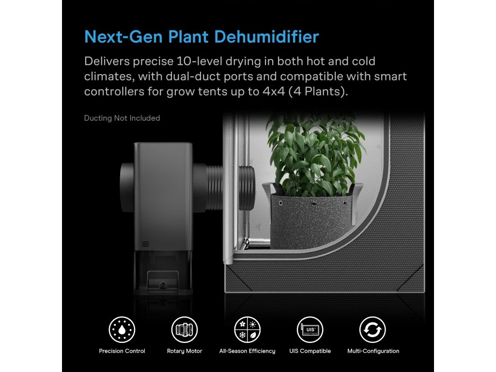 Een goede luchtvochtigheid is essentieel voor sterke planten. Deze ontvochtiger helpt bij het realiseren van gezondere groei, betere bloei en hogere opbrengsten.