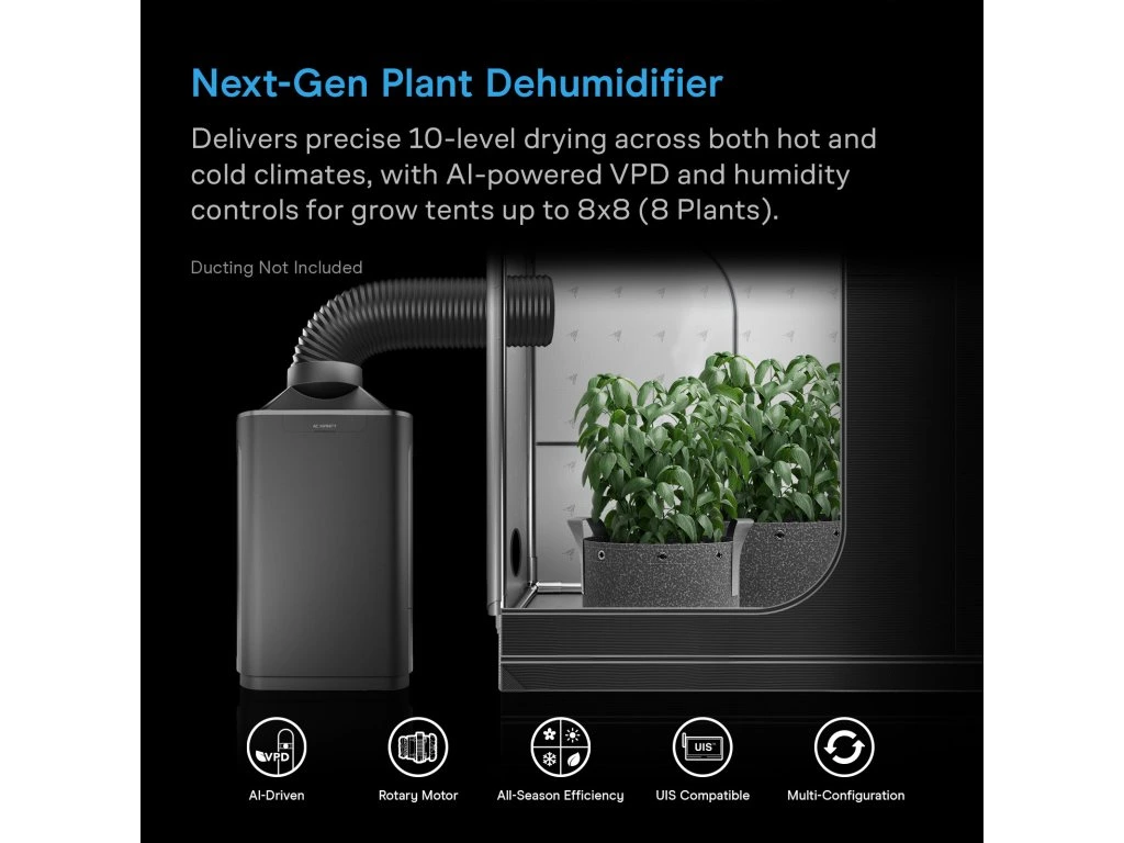 Een stabiele luchtvochtigheid is essentieel voor gezonde planten. Deze ontvochtiger zorgt voor sterkere groei, betere bloei en hogere opbrengsten.