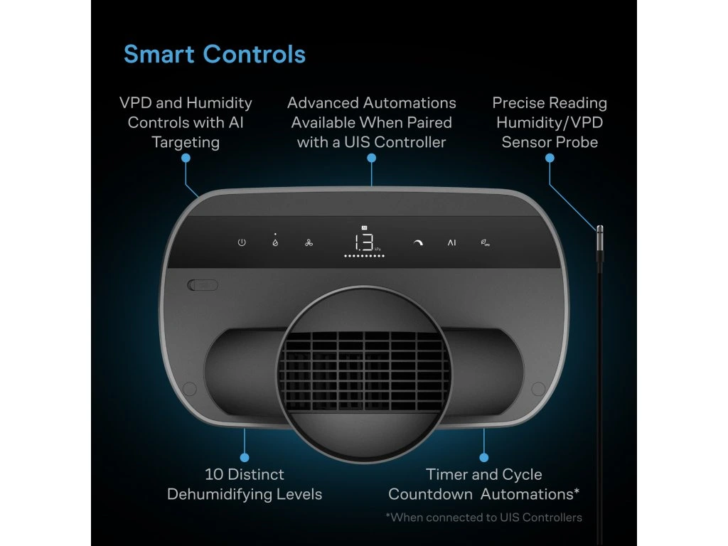 De instelbare droogniveaus maken het mogelijk om de ontvochtiging precies af te stemmen op jouw kweekomgeving. Zo blijft de luchtvochtigheid stabiel in elke groeifase.